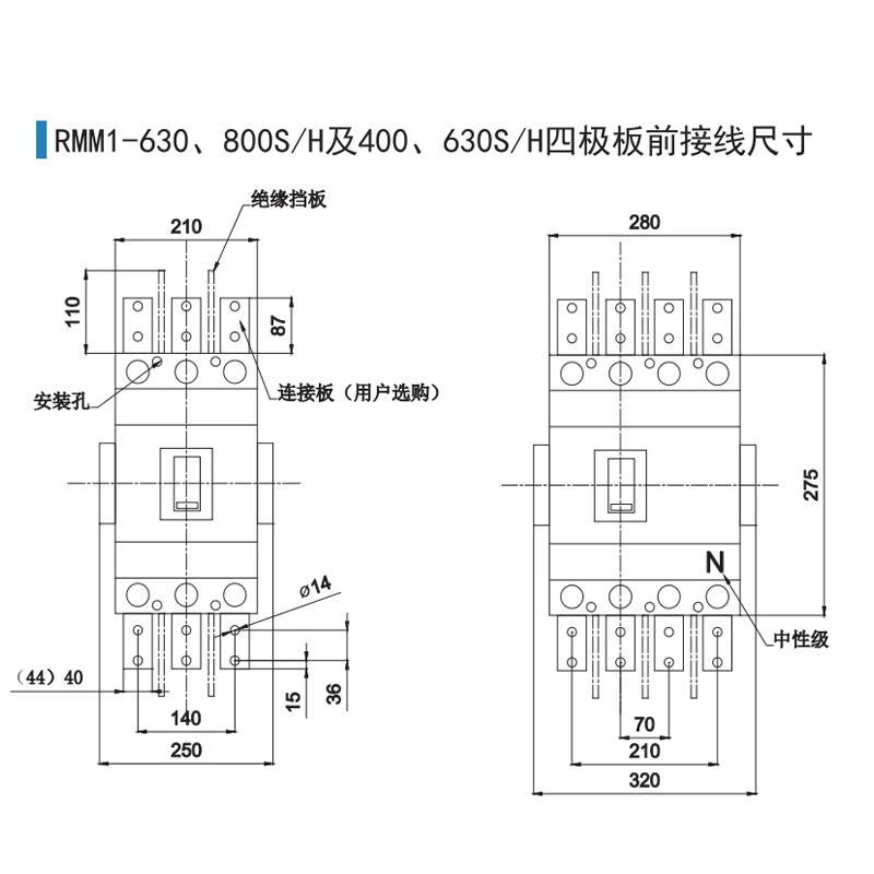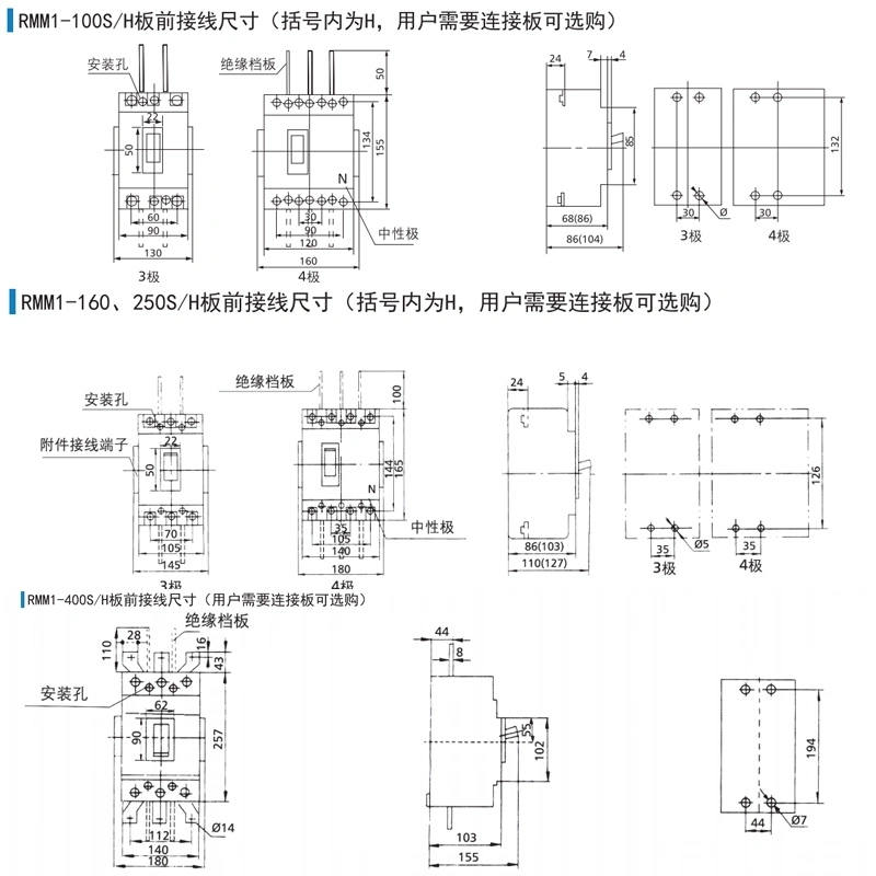 RMM1-100H400H空氣開關(guān)3P4P上聯(lián)牌塑殼斷路器63A630A