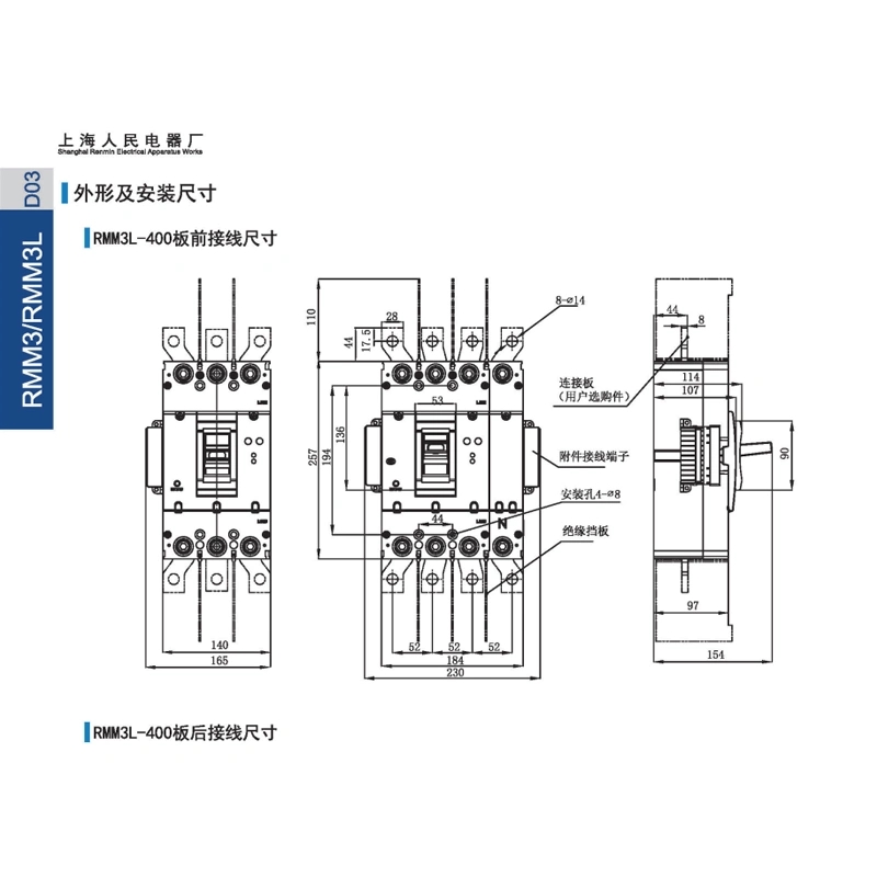 RMM3L-400H 630H 4P 替換RMM1L漏電斷路器上聯拍訂貨